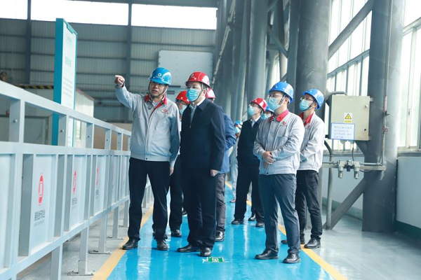 李勇在湘投金天钛业生产一线了解产品研发和产销情况